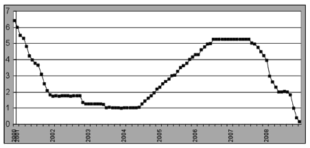 [6] Esse crescimento dos juros coincide com a consolidação dos déficits gêmeos americanos. Em 2004, o déficit público americano atinge 422 bilhões de dólares, e o comercial cerca de 640 bilhões.