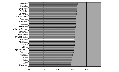 Dotar al idh-pnud de mayor validez y, al mismo tiempo, de sensibilidad para reflejar la desigual distribución de las capacidades entre unidades subnacionales requiere, en primera instancia, centrar el análisis en sus variables componentes. Es necesario comenzar indagando si cada uno de los indicadores que integran el índice sintético constituye una medida capaz de mostrar la forma en que se distribuyen los logros en un país determinado.