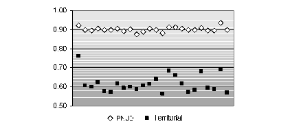 Siguiendo con las consideraciones que señalan la importancia de la dimensión territorial en la configuración de los logros al alcance de las personas, cabe indagar acerca de la sensibilidad del idh para dar cuenta de la distribución de las capacidades entre entidades espaciales de escala subnacional. En otras palabras, interesa examinar si ese índice es una medida válida para reflejar las diferencias en el acceso a oportunidades en las distintas unidades en las que se organiza un país.