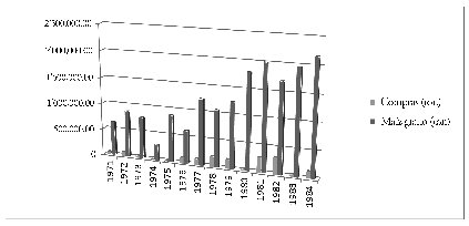 La intervención de Conasupo en el mercado de maíz dependía de los niveles de las cosechas nacionales. En los años deficitarios, la captación de Conasupo descendía considerablemente y ocurría lo contrario cuando la producción superaba la demanda (cia, 1980: 98).