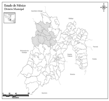 inegi (Instituto Nacional de Estadística, Geografía e Informática) (2005), Marco geoestadístico municipal 2005, inegi, Aguascalientes, México, <http://cuentame.inegi.gob.mx/mapas/pdf/entidades/div_municipal/mexico.pdf>, 16 de mayo de 2008.