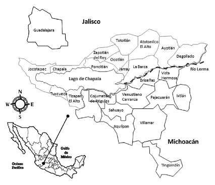 A partir de una escala macrorregional, la región hidrológica Lerma-Santiago-Pacífico se ubica en la franja central del país, la más poblada. En ella están comprendidos parte de los estados de Guanajuato, Jalisco, Estado de México, Michoacán y Querétaro, con una superficie total de 51,887 km², considerando las cuencas cerradas de Pátzcuaro y Cuitzeo; la superficie de la cuenca principal o interconectada es de 47,116 km² (Semarnat, 2006). En la escala mezo, la zona hidrológica río Lerma-Chapala pertenece al curso del río Lerma,[1] su principal afluente, y se caracteriza por enfrentar problemas de disponibilidad de agua que alcanza proporciones críticas, debido sobre todo a las derivaciones de caudales con fines agrícolas y ciudades como Guadalajara.