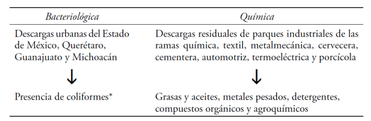 [15] Por lo que no se descarta la contaminación de los productos agrícolas, al regar los cultivos con aguas residuales no tratadas. Es el caso de los productores ubicados en la zona de riego de Jiquilpan y Sahuayo. Los criterios ecológicos de la calidad del agua para uso agrícola señalan como límite 1,000 miligramos por litro de coliformes fecales, mismo parámetro para las fuentes de abastecimiento de agua potable (Sedue, 1989).