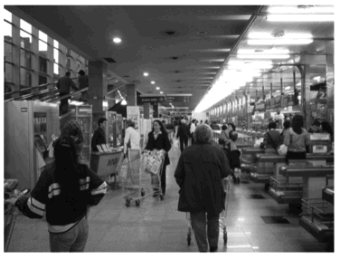 Las inversiones extranjeras también han fomentado la construcción de grandes complejos comerciales. Además de provocar el cierre de numerosos comercios pequeños y medianos, el acondicionamiento de grandes superficies del espacio urbano para el desarrollo de diversas prácticas de consumo ha contribuido a transformar la vida urbana porteña. La declinación del uso colectivo del espacio público y el incremento del empleo masivo de grandes centros comerciales es uno de los principales exponentes de dicho cambio. Algunos criterios tradicionales que permitieron alguna vez demarcar la esfera de lo público y lo privado (la forma de tenencia y el tipo de apropiación) también han caducado. Numerosos emplazamientos urbanos son de propiedad privada pero tienen utilidad pública porque cualquier persona puede acceder a ellos mientras no transgreda las normas del lugar. Quizás sea el shopping center, en sus múltiples tipos y tamaños, el principal referente de esta modalidad de apropiación pública de un bien privado. Y lo mismo ocurre a la inversa. Ciertos espacios de propiedad estatal cada vez más están a cargo del sector privado. El mantenimiento de las plazas y la vigilancia de algunos barrios residenciales administrados por empresas privadas ejemplifican esta intromisión del sector privado en la esfera tradicional de lo público.