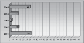 Olavarría en la prensa nacional entre los años 2001-2005: 84 (100%).