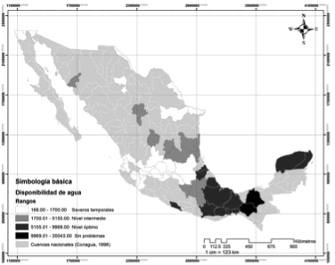 En este trabajo se considera que el diagnóstico del estatus en la disponibilidad de agua es una necesidad concreta del país, dada la creciente tasa de urbanización que incrementa la demanda del recurso (Conapo, 2005), así como por las dificultades inherentes de salud y alimentación. La producción de granos básicos, por ejemplo, muestra una balanza comercial negativa (cd, 2011), lo que hace a México un país dependiente. Como se mencionó, tanto la alimentación como la salud representan precisamente dos de los problemas más complejos a resolver en la escala mundial, y que agudizan la pobreza en la escala local. La posibilidad regional de mitigarlos representa una condición de emergencia.