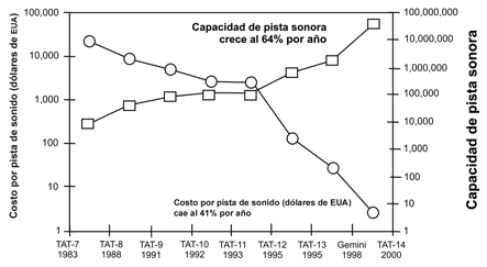 El año 2000 representó un paso histórico para la capacidad de la internet internacional, ya que por primera vez rebasó la capacidad de los circuitos telefónicos internacionales. La capacidad de la internet internacional en todo el mundo era de casi 300 Gbit/s; es decir, casi cinco veces más que en 1999. El precio de la internet es un factor importante del volumen de acceso, y se compone de dos elementos: el primero es el precio facturado por el isp (proveedores de servicio internet), que puede ser un canon fijo para una utilización ilimitada o por cierto número de horas, o un precio por tiempo. El segundo elemento del precio es la tasa de utilización del servicio telefónico local. En algunos países no se facturan las comunicaciones locales, o se facturan por un precio fijo. Países como Canadá, que no factura las telecomunicaciones locales, tienen las tarifas más bajas y altos niveles de penetración de la internet. En el otro extremo, países como Bélgica, con un acceso a internet supuestamente ‘gratuito’; es decir, que el isp no presenta una factura separada, pueden tener unas tarifas muy elevadas si las llamadas locales también lo son (véanse gráficas x y xi).