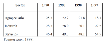 En efecto, el periodo comprendido por la década de los ochenta y hasta mediados de los noventa tiene una importancia significativa para el análisis del comportamiento de la industria manufacturera, debido a las transformaciones políticas, sociales y económicas que se presentaron y que afectaron la evolución de la industria nacional hasta el punto de llevarla al estancamiento, o más aún, a un desmantelamiento de la estructura productiva que se expresa en un proceso de desindustrialización.[12]