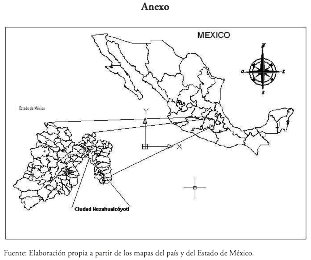 [8] El municipio de Nezahualcóyotl está ubicado en la periferia oriente de la ciudad de México es uno de los de mayores dimensiones del Estado de México; es parte, también, de los 10 municipios más grandes del país, ya que ocupa el noveno lugar pues cuenta con 1.1 millones de residentes (Conapo, 2005).