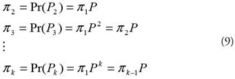 Para cada estado subsecuente Pt+1, t = 1, 2, 3,….., cada probabilidad condicional se presenta de la siguiente forma: