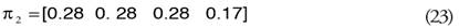 Ahora bien, para analizar el proceso dinámico de las entidades maquiladoras, y evaluar si tienden hacia una convergencia o divergencia, es necesario multiplicar el vector de estado inicial (π2) por las matrices de transición previas, para ambos casos los vectores ergódicos se muestran a continuación: